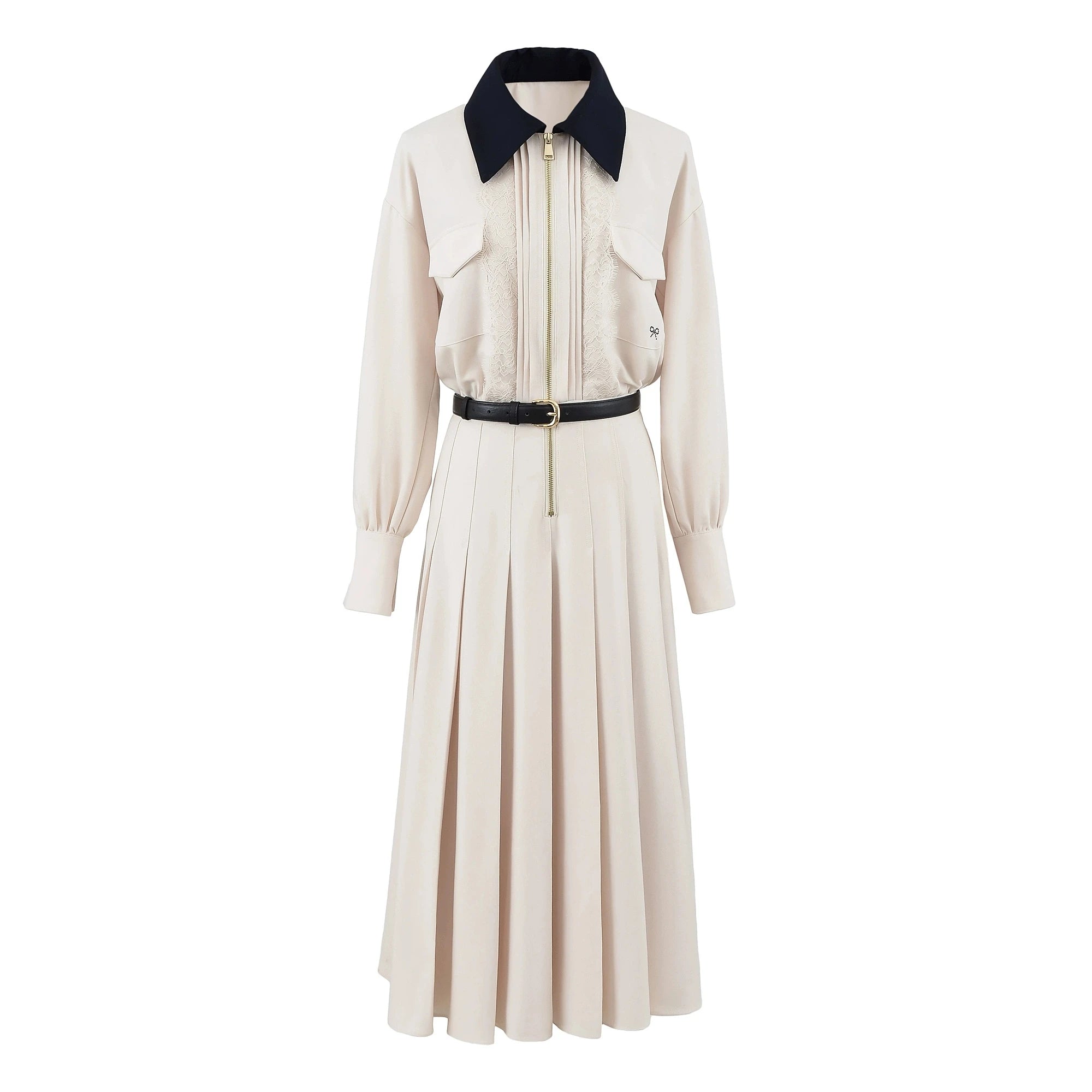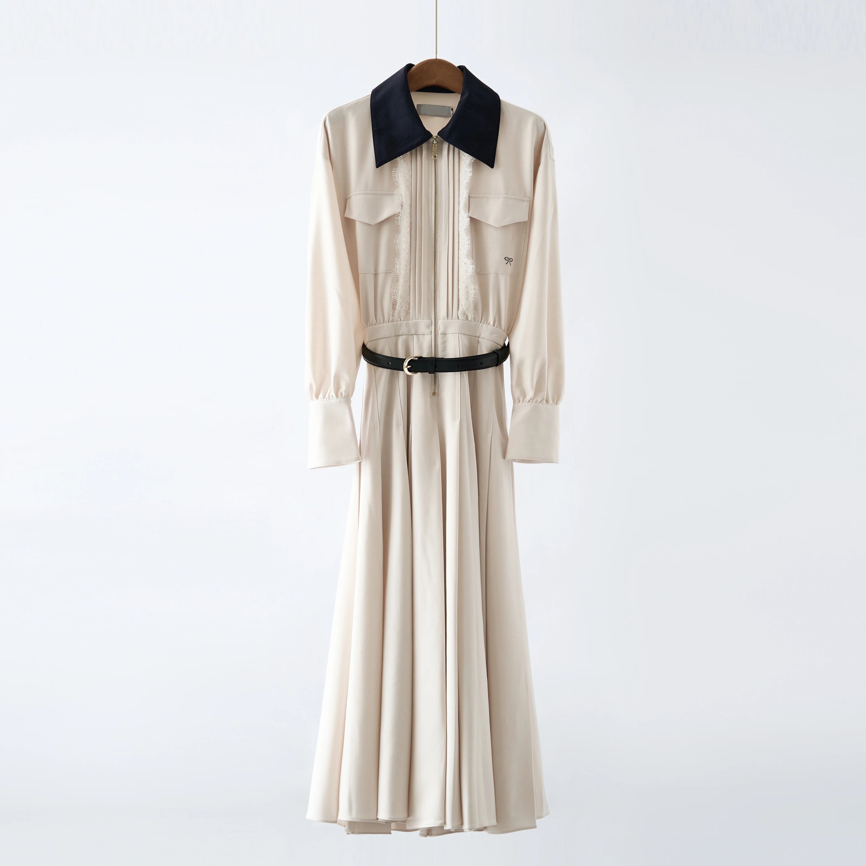 Autumn New High Quality Long Shirt Dress with Elegance Waist Cinching Contrasting Colors Lapel Collar Casual Style