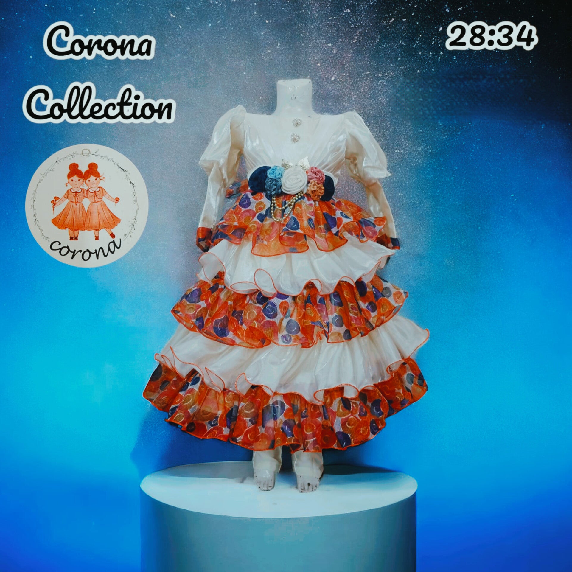 Corona Girls' Layered Ruffle Party Frock Elegant White Dress with Multicolor Polka Frills & Floral Waist Belt Formal Occasion Wear (Size 28:34) Collection