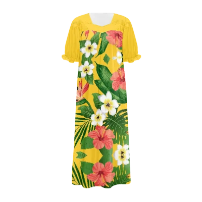 Custom Branded Clothing Robe Femme Autumn Maxi Dress Ladies Yellow Floral Puff Sleeve Ruffles Modest Women Casual Midi Dress