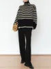 Striped High Neck Sweater for Women's New Autumn Loose Design Sense Knitted Shirt Color Matching Pullover Sweater