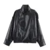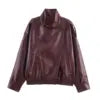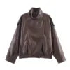 Women 2025 Autumn New Fashion Faux Leather Jacket Coat Vintage Long Sleeve Pockets All-match Casual Female Outerwear Chic Tops