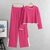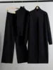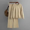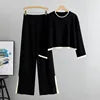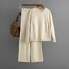 Spring Autumn Solid Sweater Suit Long Sleeve Top T Shirt Wide Leg Pants Loom Clothing Woman Knitted Lady Two Piece Set for Women