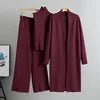Vintage Fashion Ladies 3-Piece Set Long Cardigan Knitted Pant Ladies Sweater Suit-Casual Spring Autumn Styles