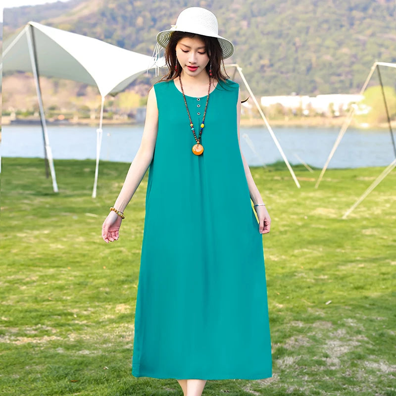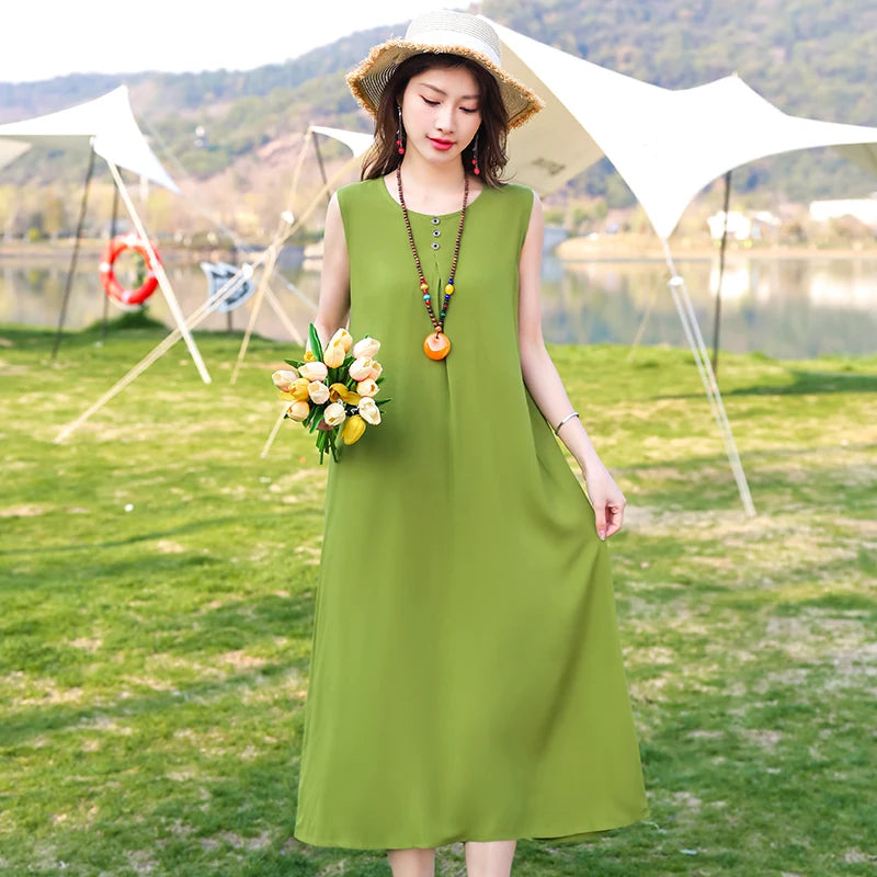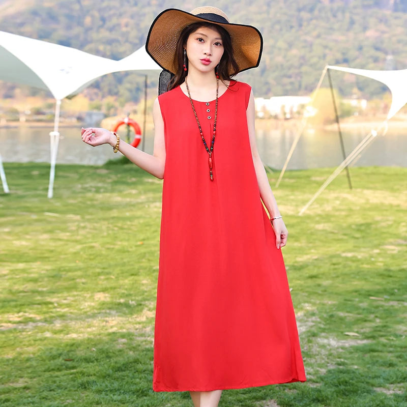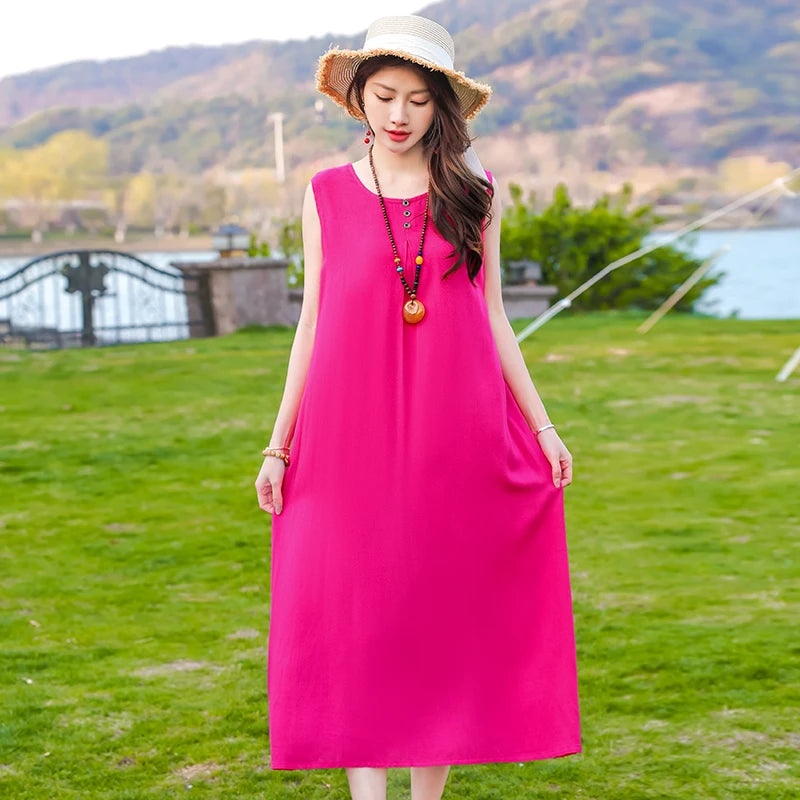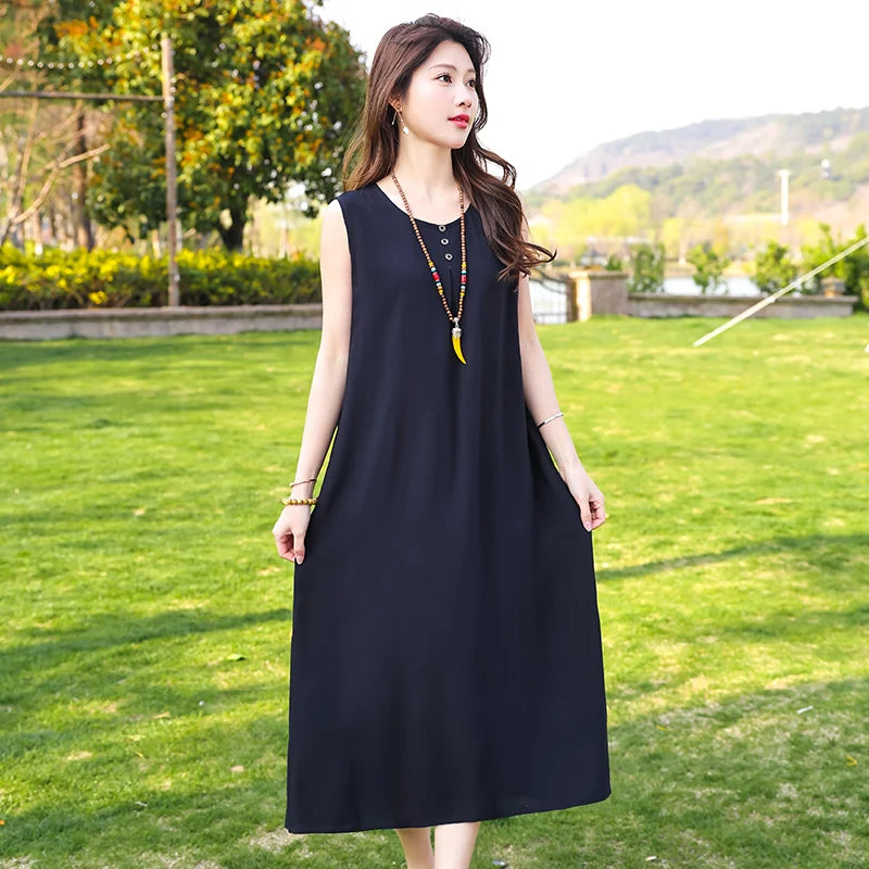 New Fashion Casual Style 2023 Summer Dresses For Women V-neck Cotton Robe Femme Vintage A-line Solid Dress Women Clothing