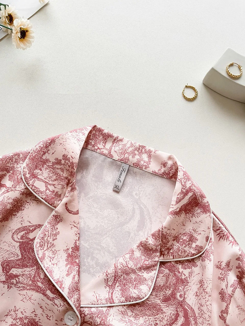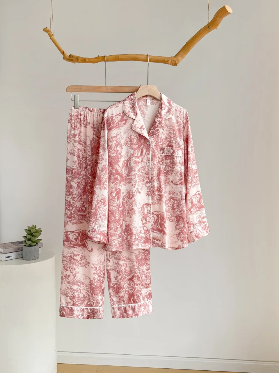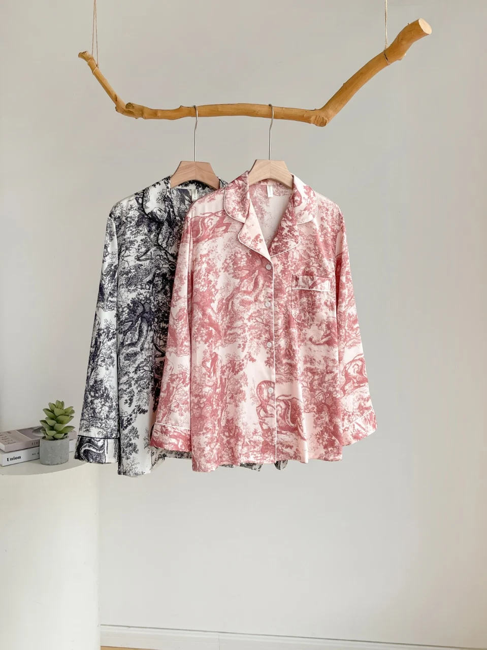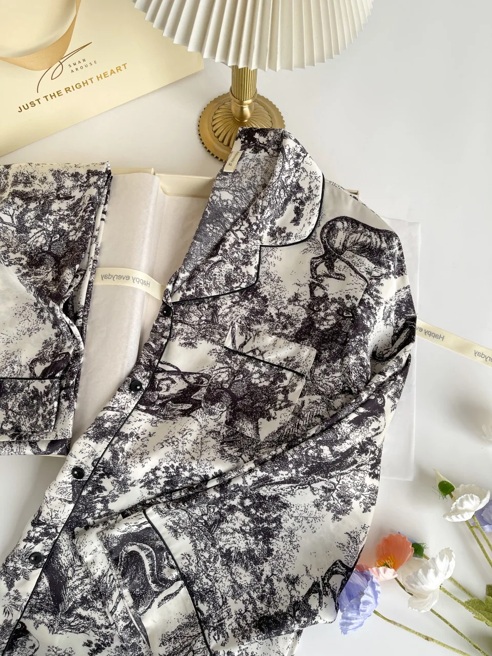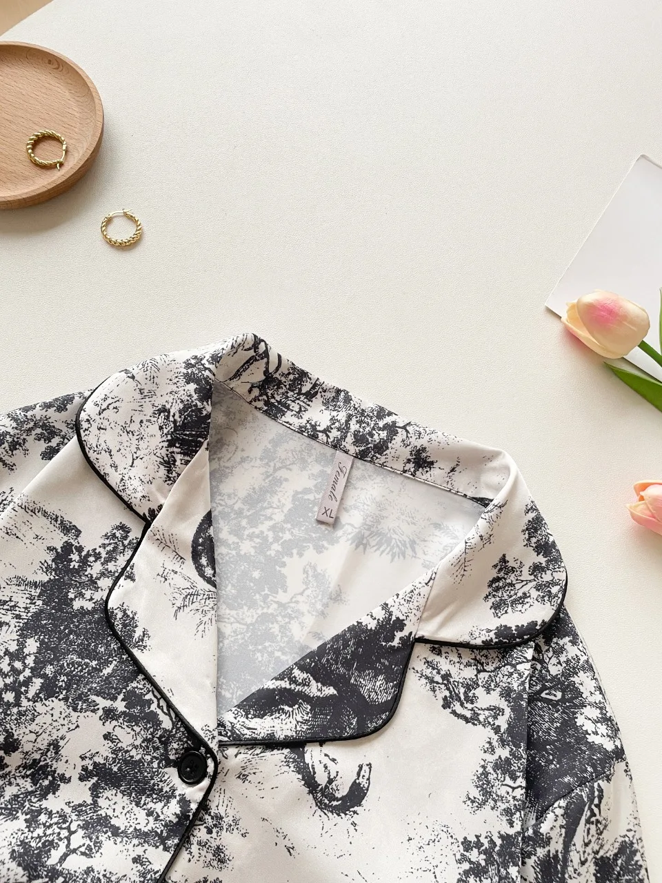 2024 New Design Silk Ladies Pajamas Autumn Elegant Jungle Print Women's Plus Size Sleepwear Long Sleeve Trousers Home Wear Set