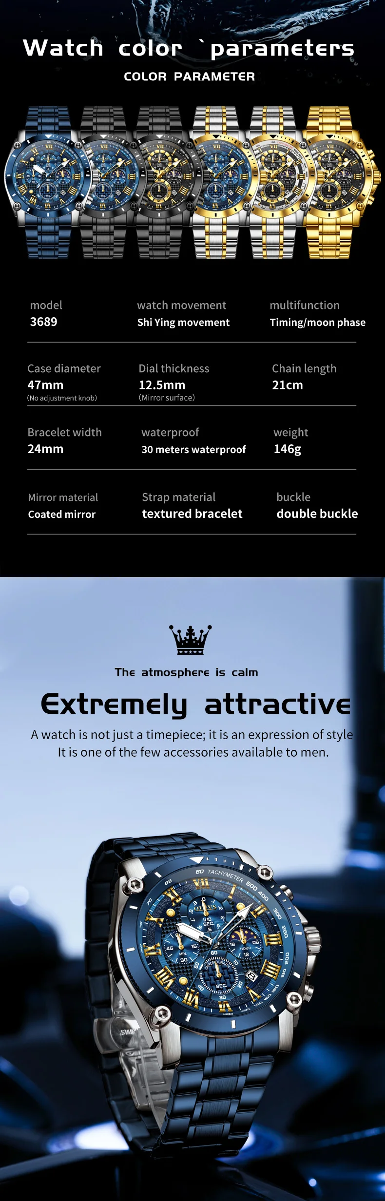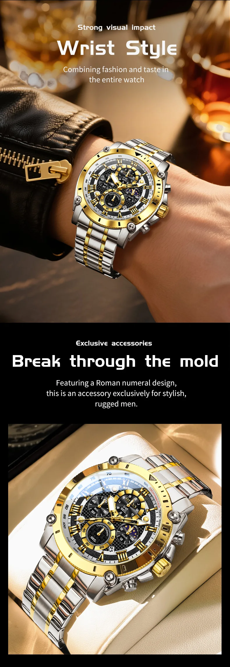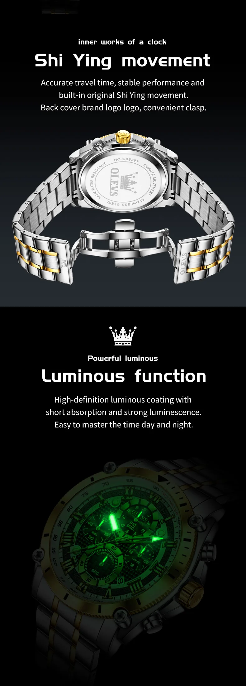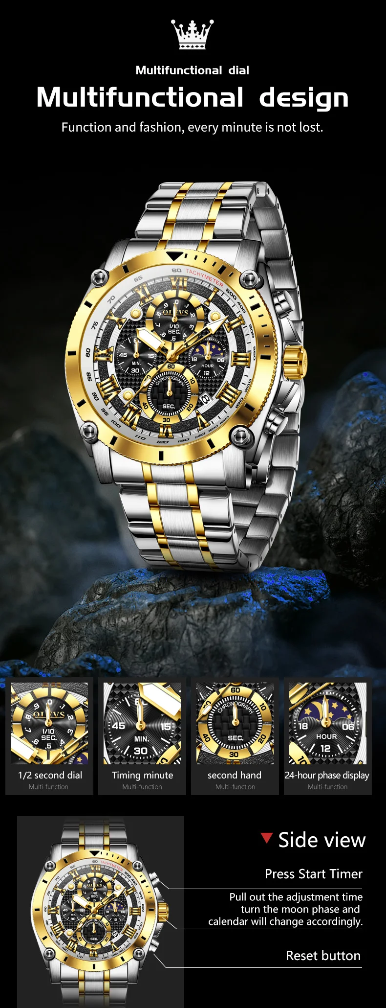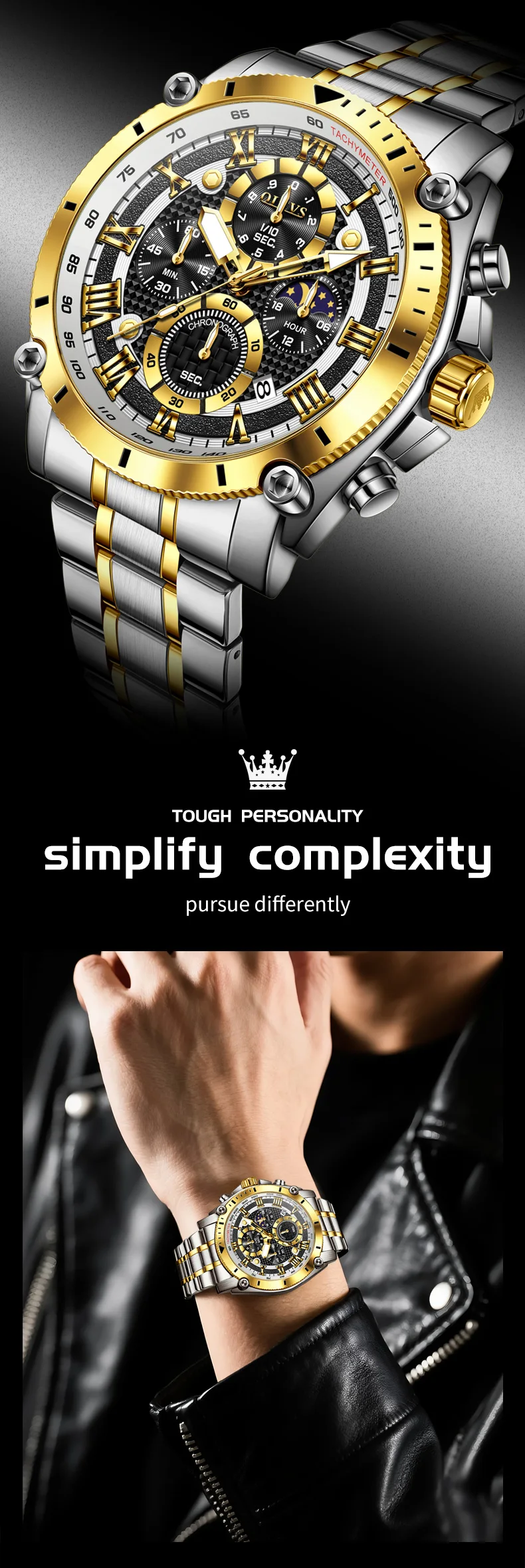 OLEVS 3689 Luxury Oem Odm Original Custom logo Stainless Steel Multi-function Chronograph Moon Phase Sports Quartz Watch for Man