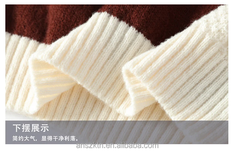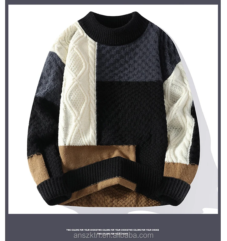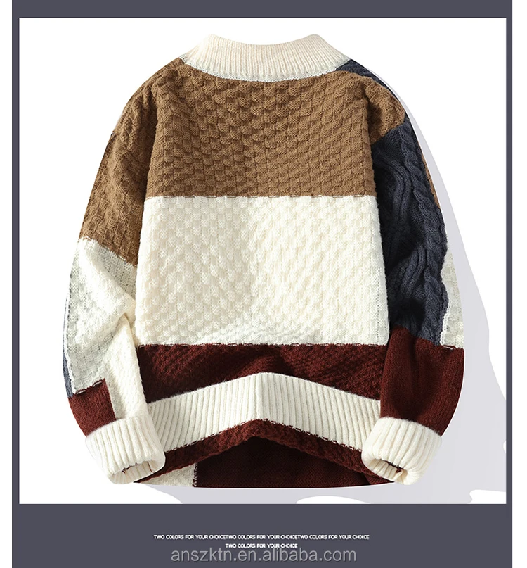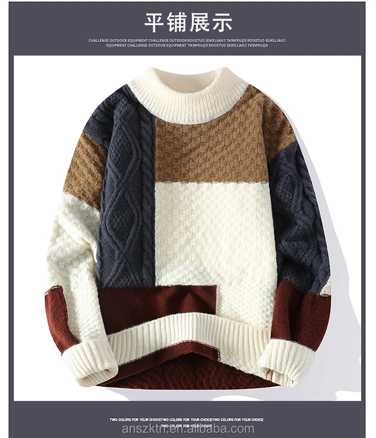Zeimal Men Loose Fashion Crewneck Sweater Half Turtleneck Sweater