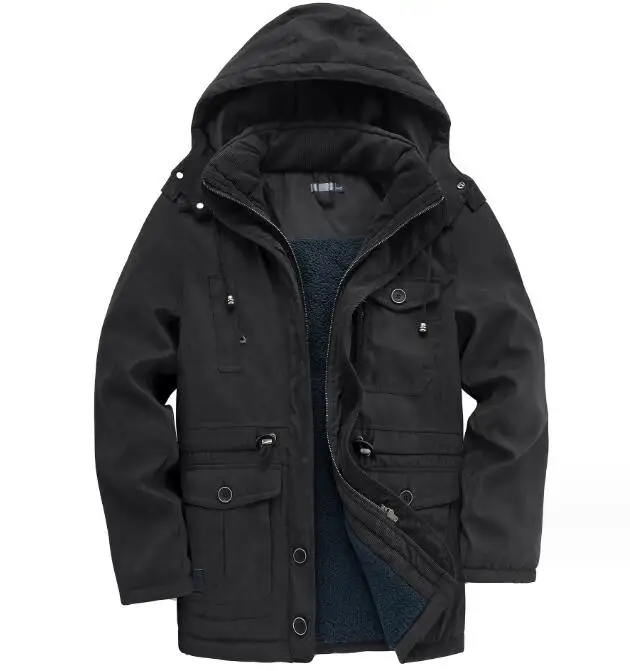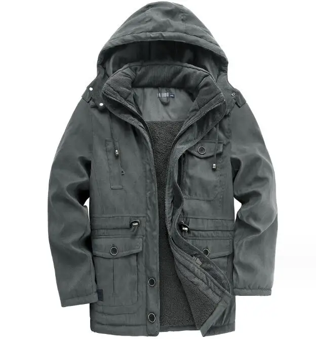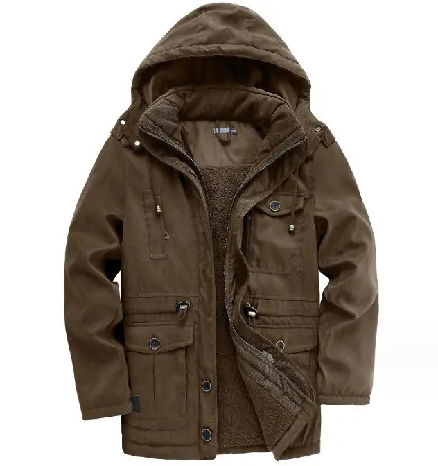 Zeimal Men's Thickened Coat Solid Color Oversized Cotton Jacket Mid Length Casual Lamb Cashmere Jacket