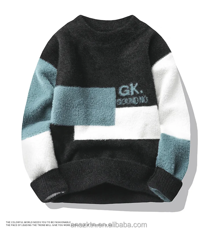 Zeimal New Men's Loose Fashion Youth Sweater Crewneck Half Turtleneck Sweater