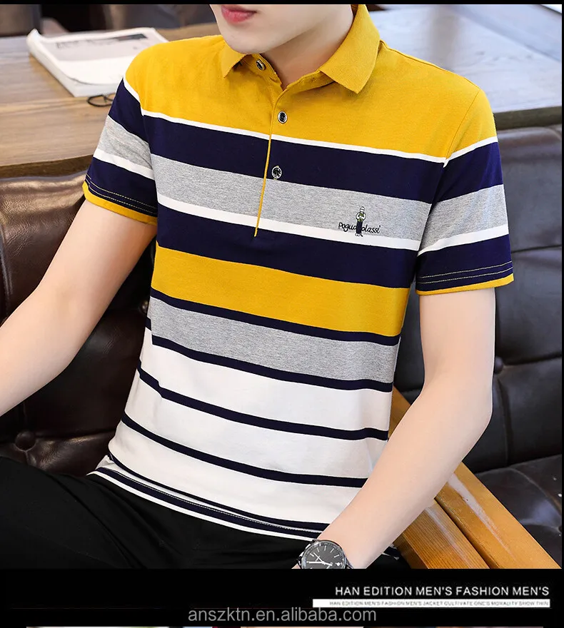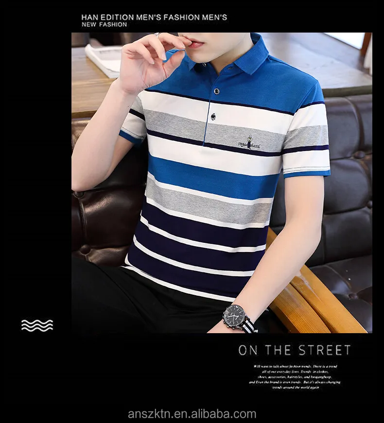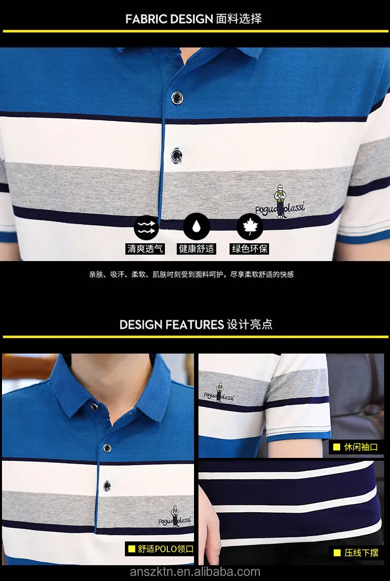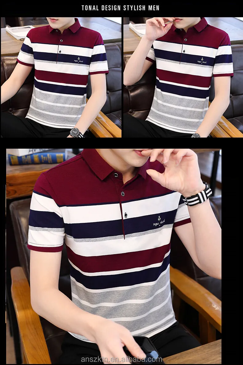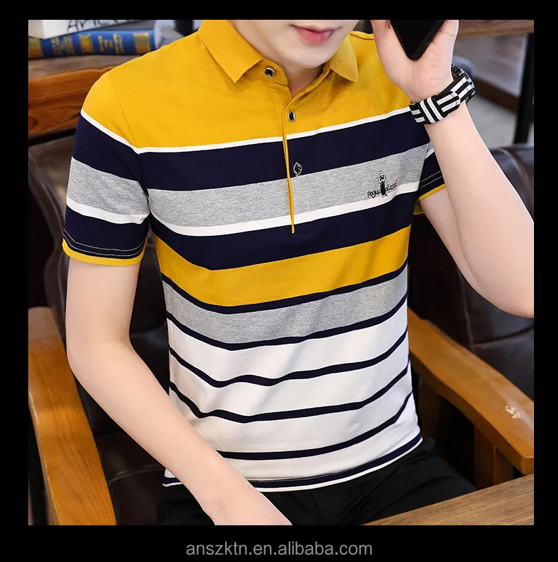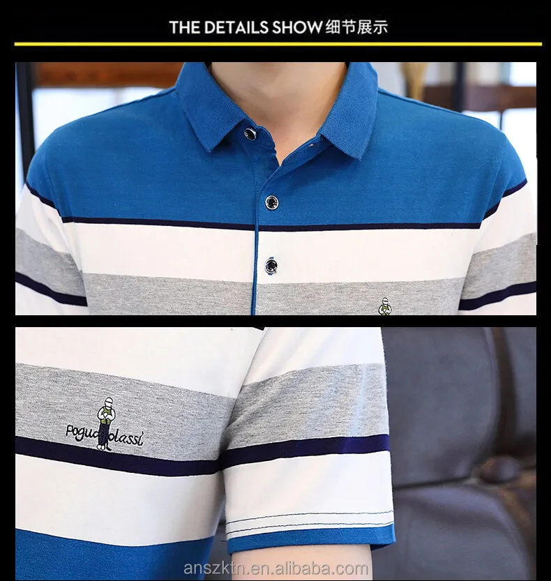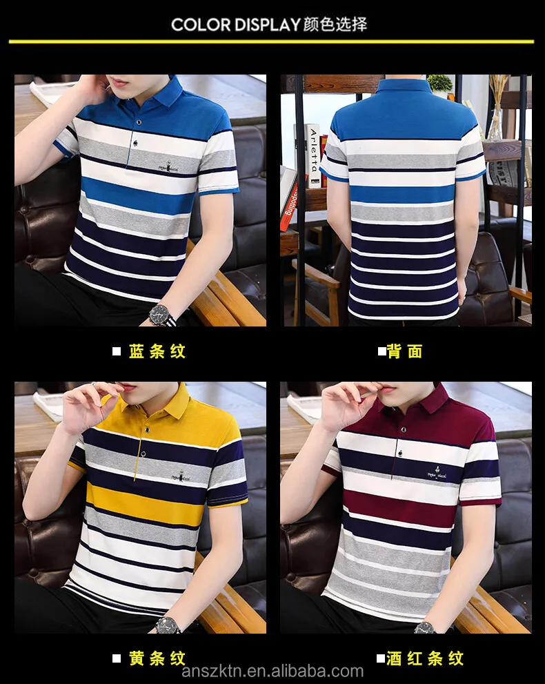 Zeimal Summer New Men's Short Sleeve T-shirt Striped Cotton Thin Business Lapel Polo Shirt